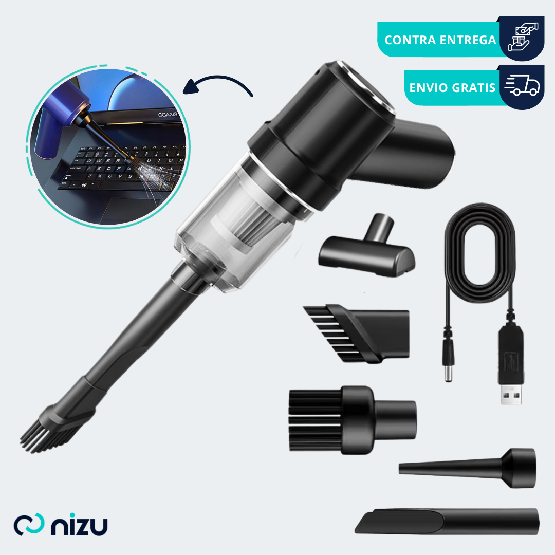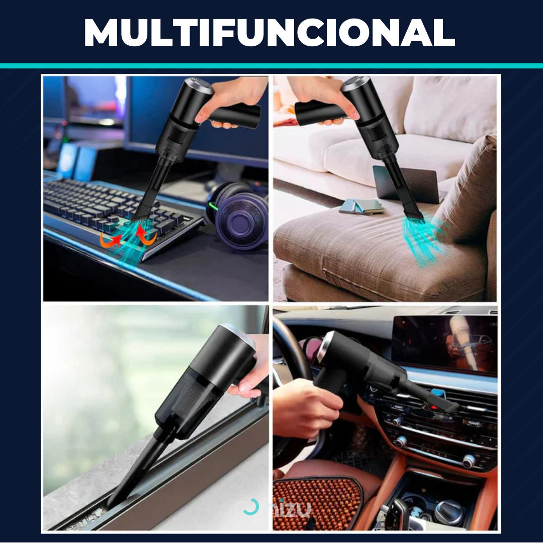 Nuestra Aspiradora Multifuncional Portátil Inalámbrica no solo aspira, ¡también sopla e infla! Imagina limpiar el interior de tu coche en minutos, dejar impecables las ranuras del teclado o incluso inflar un pequeño colchón de aire. Todo esto con un solo dispositivo compacto y fácil de usar.