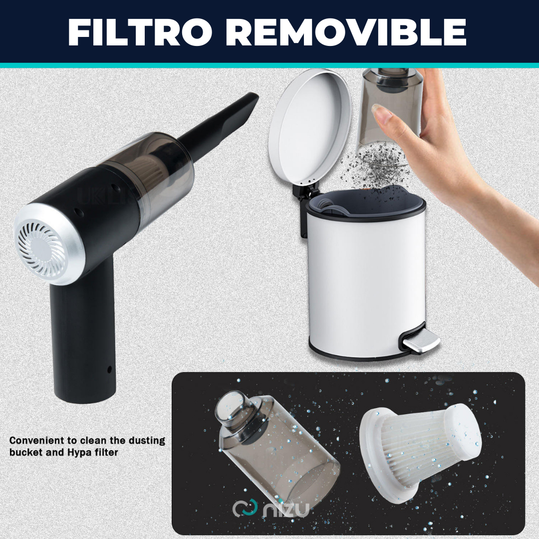 Imagina la libertad de deshacerte del polvo, las migas, el pelo de mascota y la suciedad más rebelde sin cables que te limiten. Esta aspiradora compacta y potente está diseñada para hacer tu vida más fácil, ya sea en tu vehículo, tu hogar o tu espacio de trabajo.