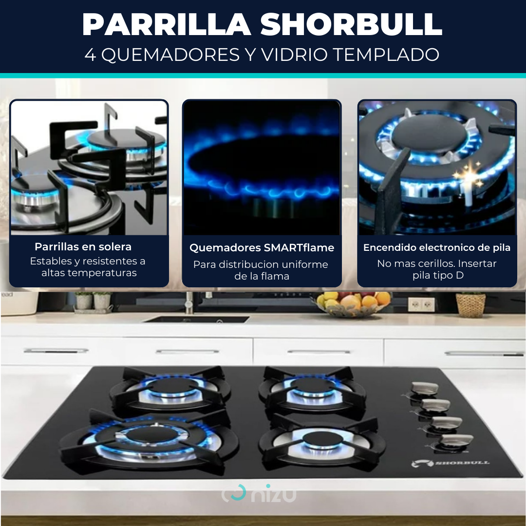 💡 Dale a tu cocina el toque moderno, seguro y eficiente que mereces. La Estufa de 4 Quemadores Shorbull combina potencia, diseño elegante y fácil mantenimiento para que disfrutes cada momento en la cocina.