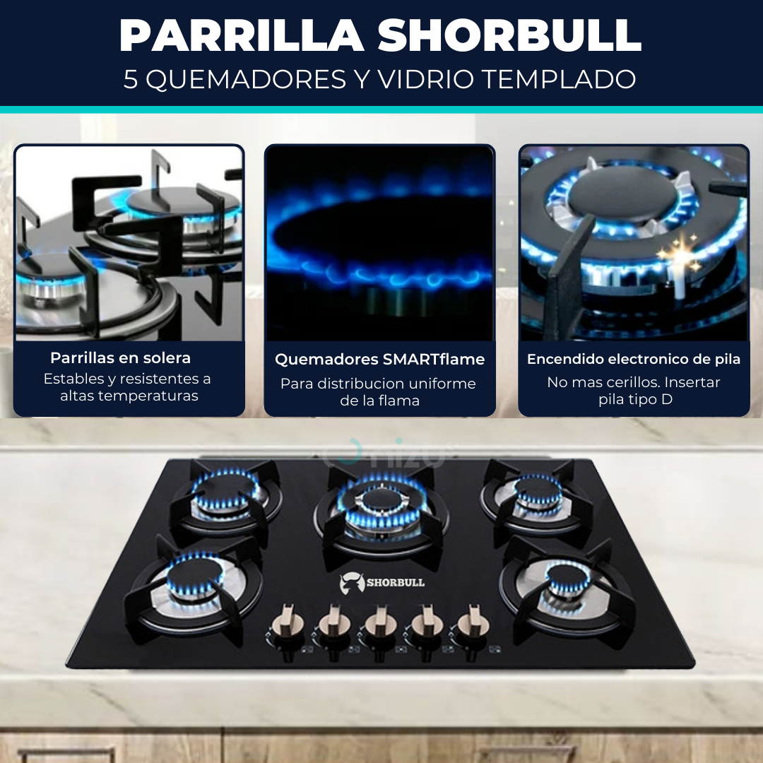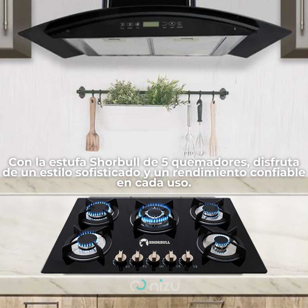 💡 Dale a tu cocina el toque moderno, seguro y eficiente que mereces. La Estufa de 5 Quemadores Shorbull combina potencia, diseño elegante y fácil mantenimiento para que disfrutes cada momento en la cocina.