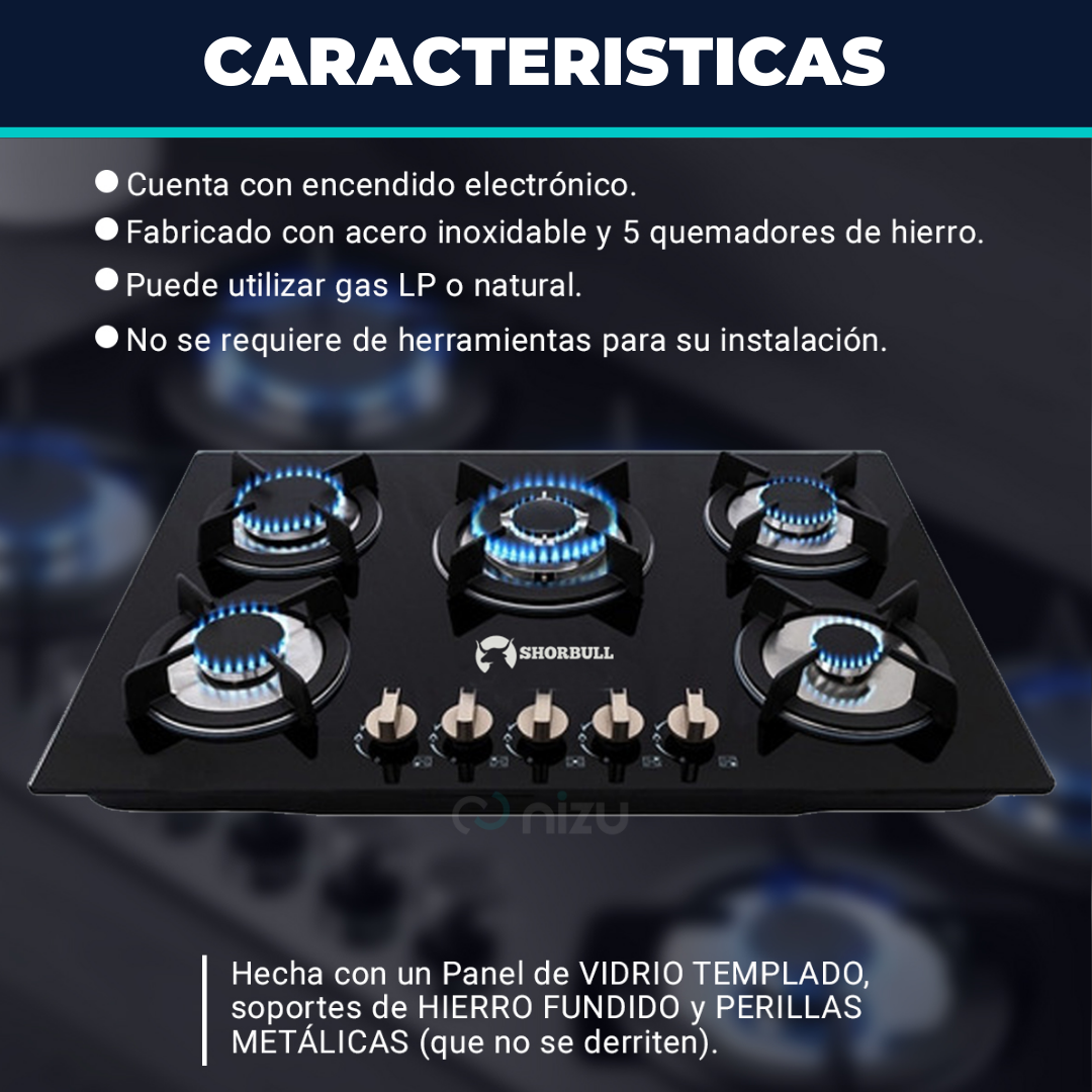 Parrilla 5 Quemadores Vidrio Shorbull