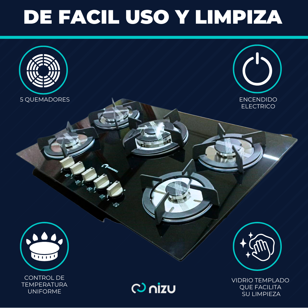 🔒 Seguridad en cada uso: Vidrio resistente al calor y perillas con válvulas de seguridad, garantizando una cocción tranquila y sin preocupaciones.