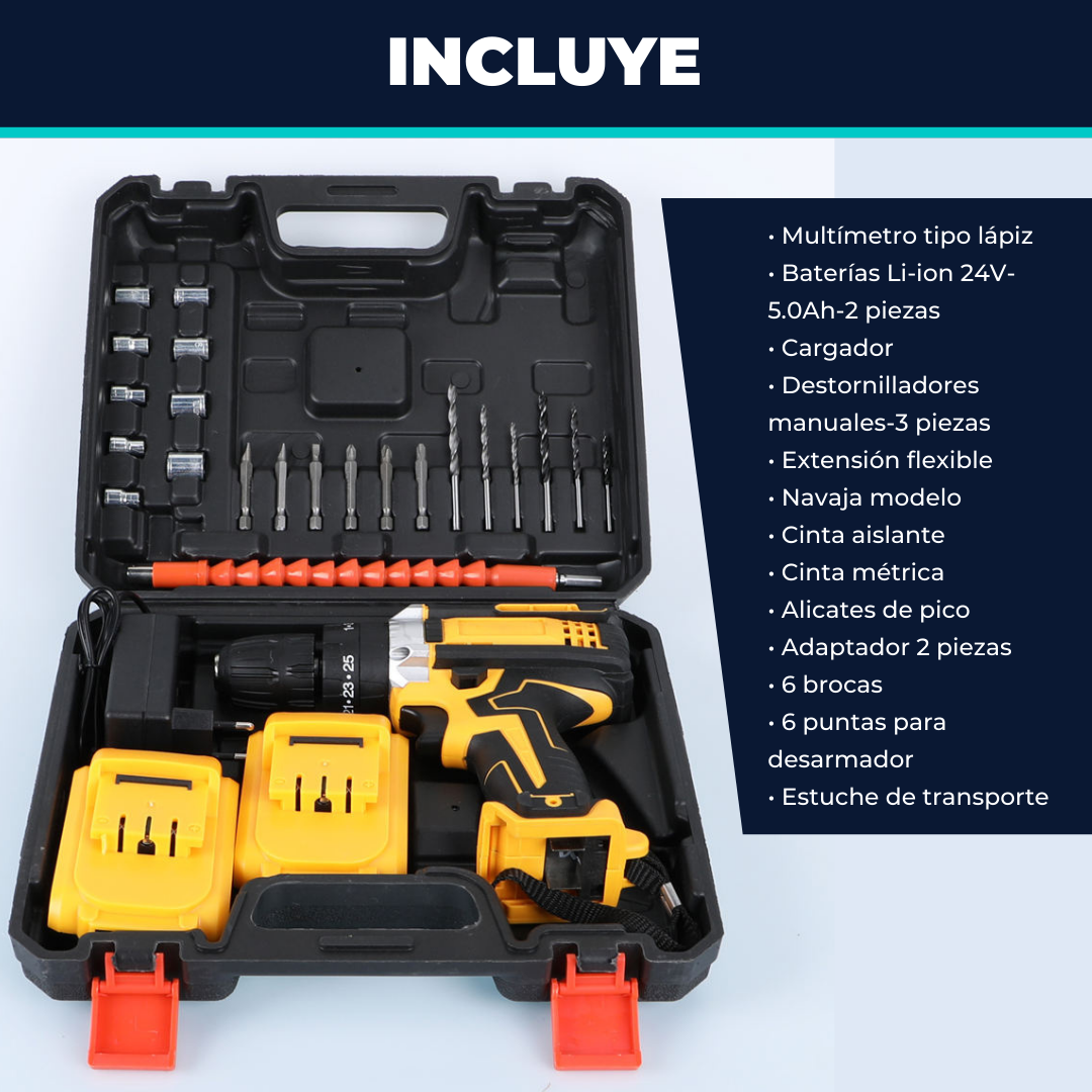 ⚡ Energía duradera: 2 baterías de litio de 24V y 5.0Ah para trabajar sin interrupciones.